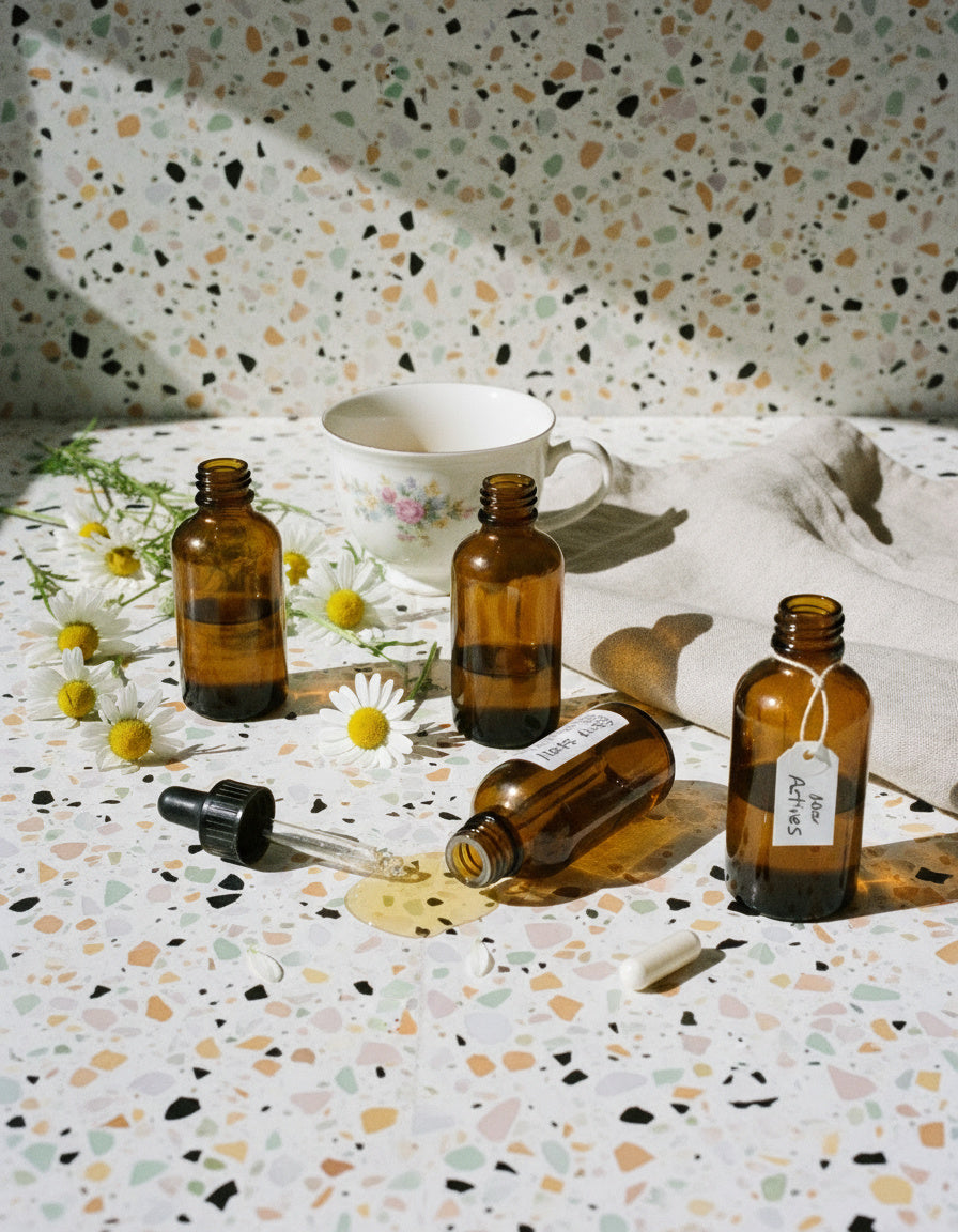 Bisabolol (from chamomile) and chamomile CO₂ extract reduce redness, soothe flare-ups, and help reactive skin feel at ease again.